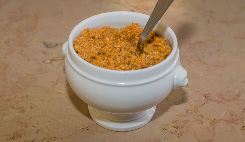 Servi chaud et aromatisé, le quinoa prend la forme d’un risotto et se marie à la perfection aux langoustines décortiquées. Avec une tuile croquante de pomme de terre et de quinoa ou simplement avec des morceaux de parmesan, le risotto est sublimé par quelques épices et piments péruviens. Le picante de quinoa, un plat qui change du traditionnel !